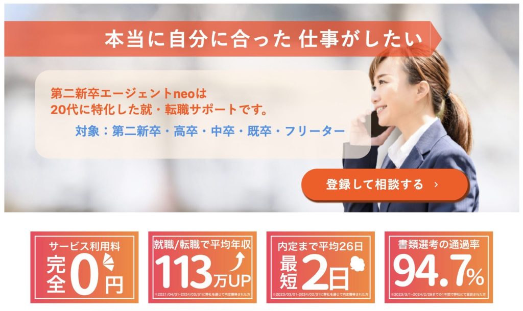第二新卒(20代)にオススメの転職エージェントは既卒・フリーター向け就職エージェント【UZUZ既卒】と安定のお仕事、第二新卒エージェントneo![]()